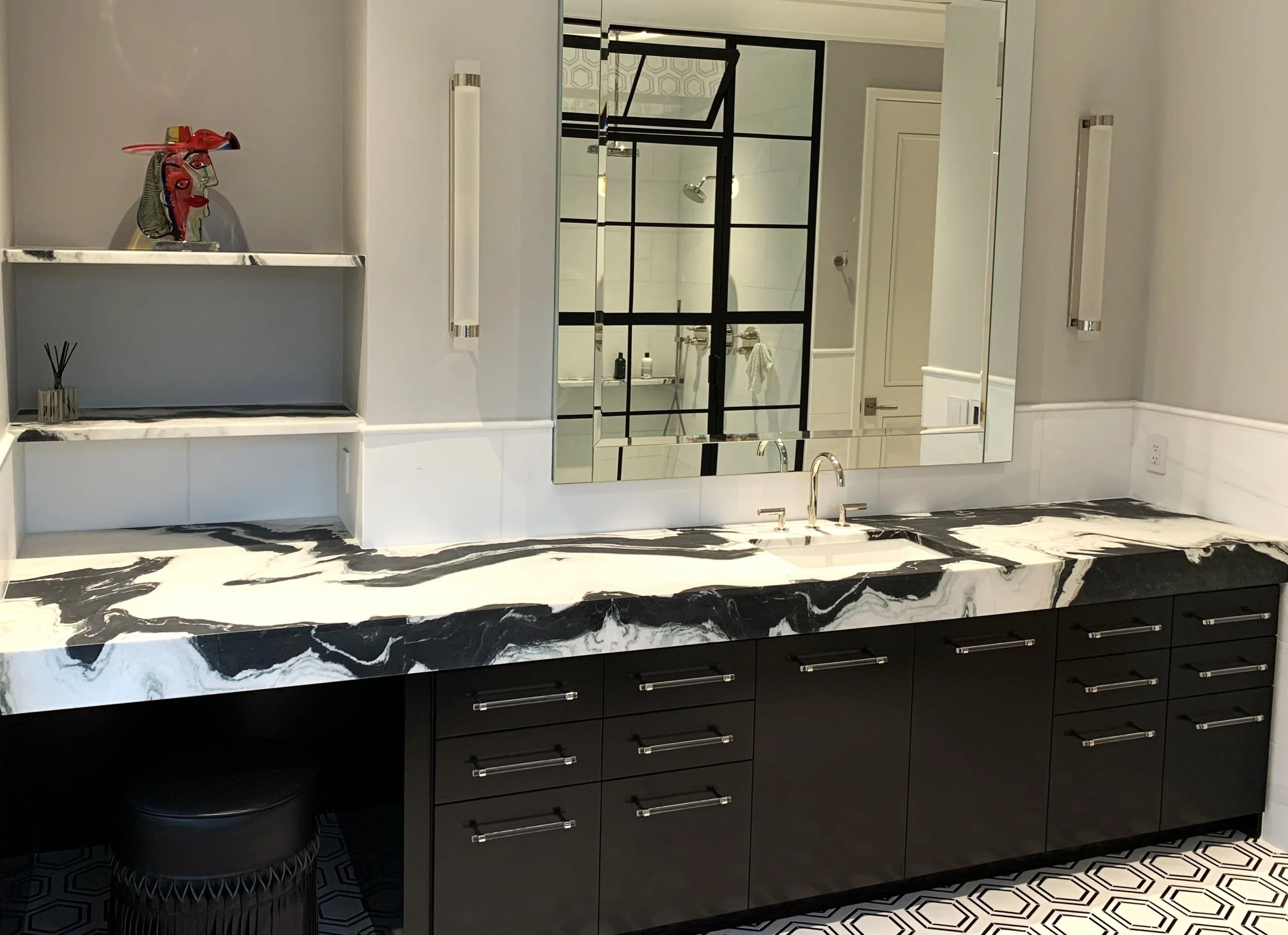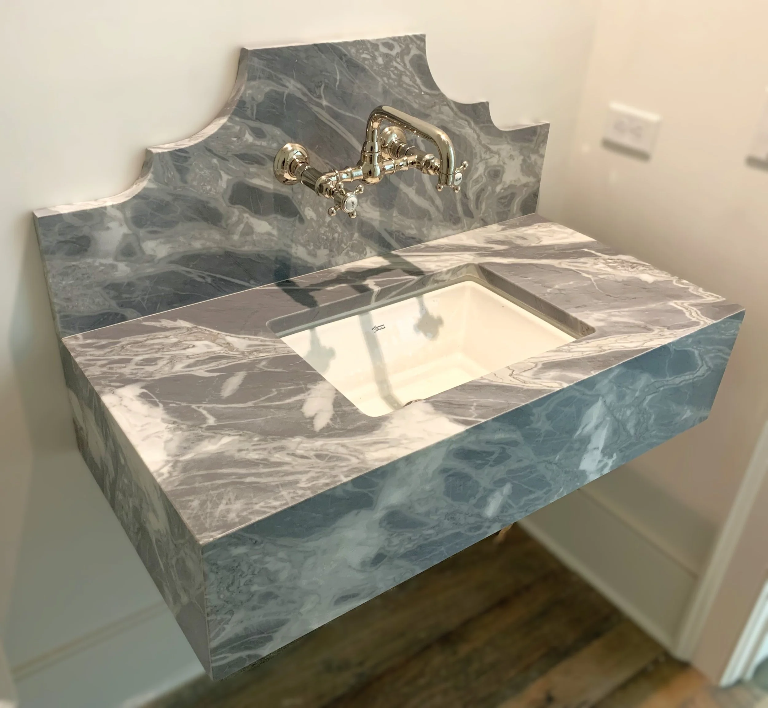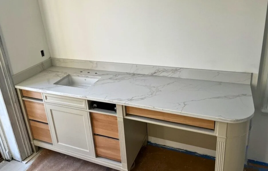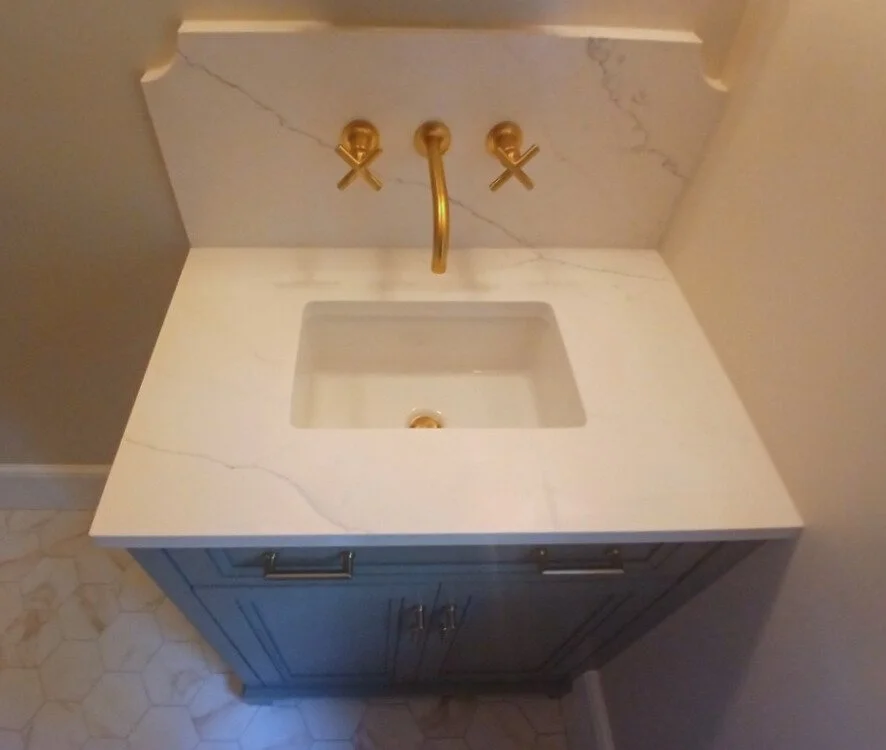 Elevate your bathroom with our custom stone vanity tops, combining timeless beauty with enduring strength.